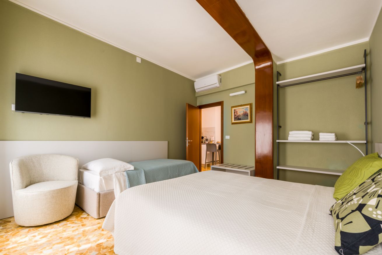 Ca’ del Bezzo City View è un ampio e raffinato appartamento situato nel sestiere di Santa Croce, a breve distanza da Piazzale Roma e facilmente raggiungibile dalla stazione Santa Lucia di Venezia. Al primo piano, può ospitare fino a 5 persone e dispone di due camere da letto (una con letto matrimoniale e una con letto matrimoniale più singolo), due bagni completamente ristrutturati, zona giorno con angolo cottura e arredi curati nei dettagli. L’appartamento è dotato di Wi‑Fi gratuito, aria condizionata, TV, biancheria e tutti i comfort necessari per un soggiorno confortevole e piacevole con vista sulla città.