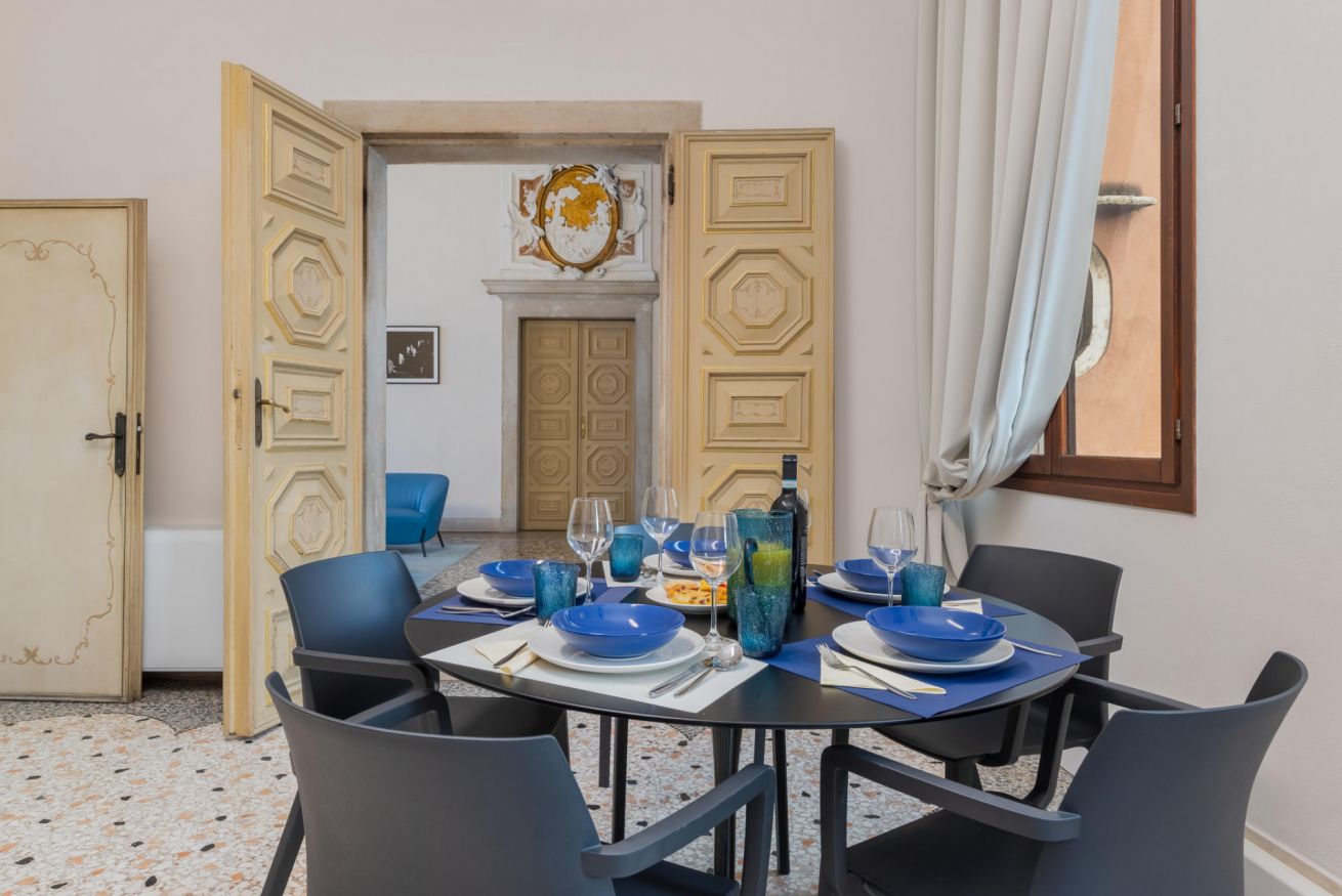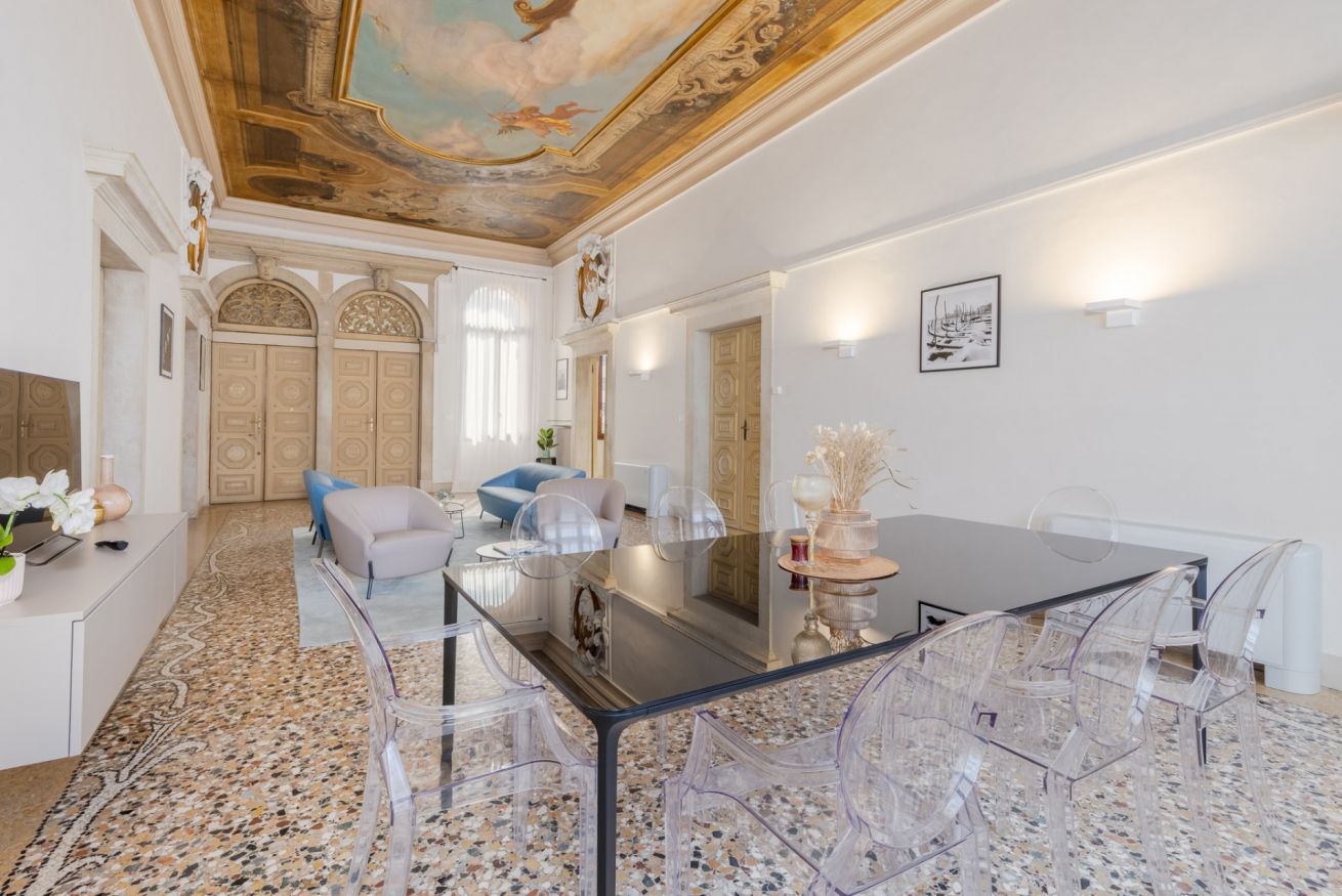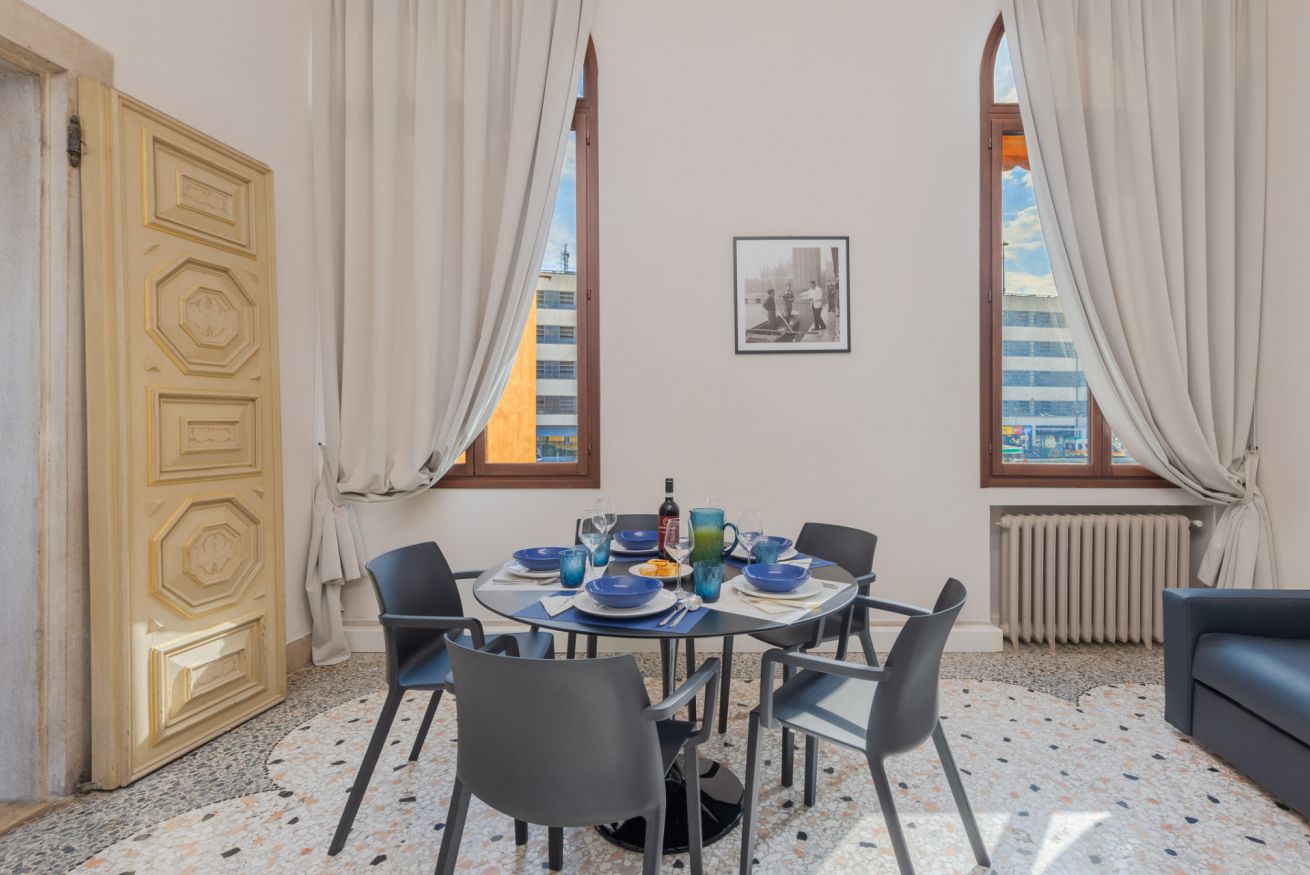 Luxury Calatrava è un elegante appartamento nobile situato nel sestiere di Santa Croce, in una delle posizioni più strategiche di Venezia, a pochi passi dalla stazione di Santa Lucia e dalle principali fermate dei vaporetti. L’appartamento, al secondo piano di un palazzo storico, offre splendide vetrate con vista sul Canal Grande e un piccolo terrazzino panoramico con vista sul Ponte di Calatrava. Può ospitare fino a 5 persone e dispone di una camera da letto matrimoniale, un soggiorno con divano letto, cucina completamente attrezzata e bagno con doccia. Gli ambienti sono caratterizzati da soffitti affrescati, arredi di design italiano, aria condizionata e comfort moderni per un soggiorno indimenticabile nel cuore di Venezia.