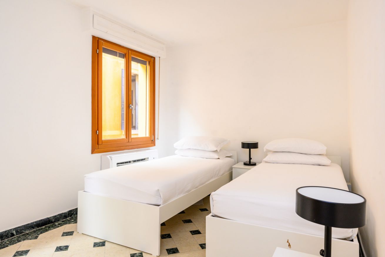 Palazzina Pistor si trova in una tipica calle veneziana nel sestiere di Castello e ospita due appartamenti moderni e recentemente ristrutturati, al primo e secondo piano. Ideali per famiglie o gruppi fino a 6 persone, ogni appartamento dispone di una camera matrimoniale, una camera con due letti singoli, un ampio soggiorno con divano letto matrimoniale e smart TV, cucina completamente attrezzata e bagno con doccia e lavatrice. Gli ambienti sono climatizzati e dotati di Wi‑Fi gratuito, offrendo comfort e funzionalità per un soggiorno piacevole nel cuore di Venezia, vicino ai Giardini della Biennale e all’Isola di Sant’Elena.