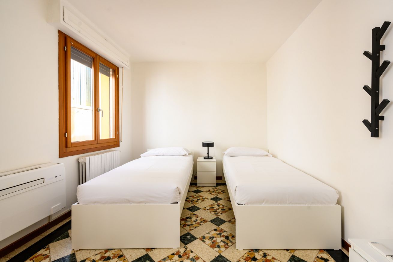 Palazzina Pistor si trova in una tipica calle veneziana nel sestiere di Castello e ospita due appartamenti recentemente ristrutturati, al primo e secondo piano. Ideali per famiglie o gruppi fino a 6 persone, ogni appartamento dispone di camera matrimoniale, camera con due letti singoli, soggiorno con divano letto matrimoniale e smart TV, cucina completa e bagno moderno con doccia e lavatrice. Gli ambienti sono climatizzati e dotati di Wi‑Fi gratuito, offrendo comfort e funzionalità nel cuore di Venezia, vicino ai Giardini della Biennale e all’Isola di Sant’Elena.