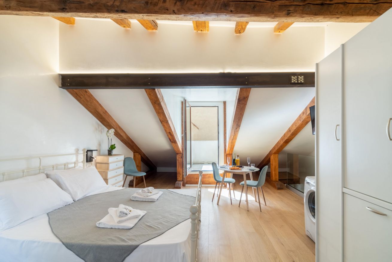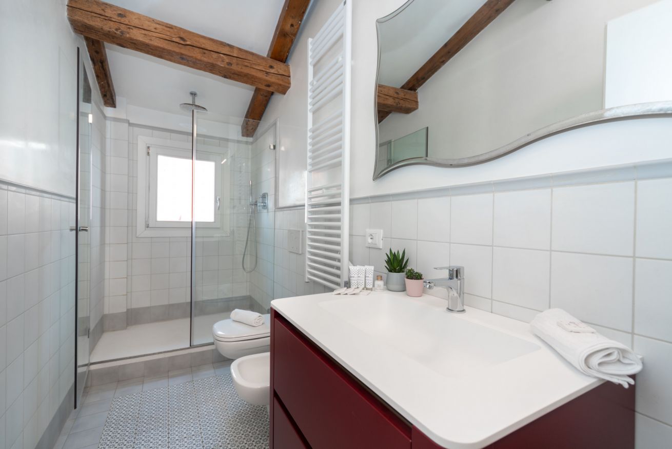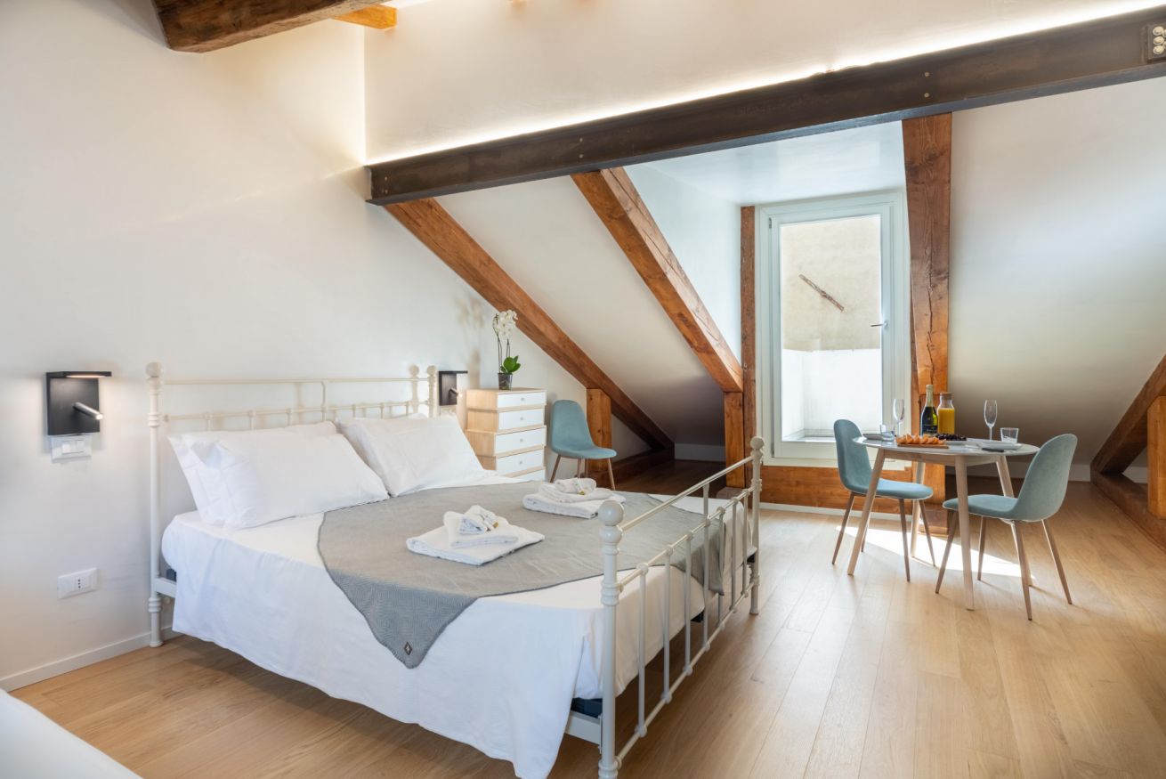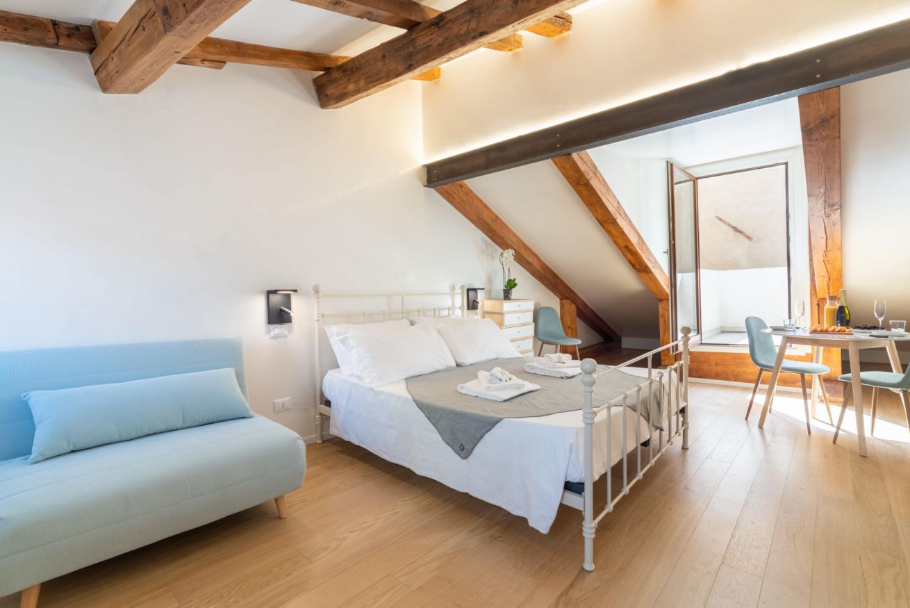 Palazzina Schiavoni – 3° piano è un appartamento luminoso e completamente ristrutturato situato nel sestiere di Castello, a pochi passi dalla Riva degli Schiavoni e da Piazza San Marco nel cuore di Venezia. Può ospitare fino a 3 persone ed è composto da una camera doppia, un divano letto singolo, una cucina ben attrezzata, un bagno moderno con doccia e una piccola terrazza con vista sulla città. L’appartamento offre Wi-Fi gratuito, aria condizionata, TV, frigorifero, lavastoviglie, moka, bollitore e lavatrice, garantendo comfort e funzionalità per un soggiorno piacente nella città lagunare. Si trova al terzo piano di un edificio storico senza ascensore.